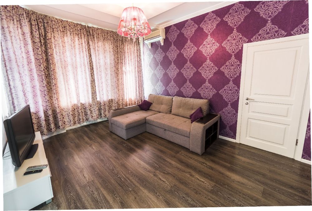 Очень просторная двухкомнатная квартира станет оптимальным выбором для компании из 2-4 человек. Она находится по улице Льва Толстого, 5а. В пешей доступности станция метро, Бессарабский рынок и парковая зона около университета им. Т. Г. Шевченко.